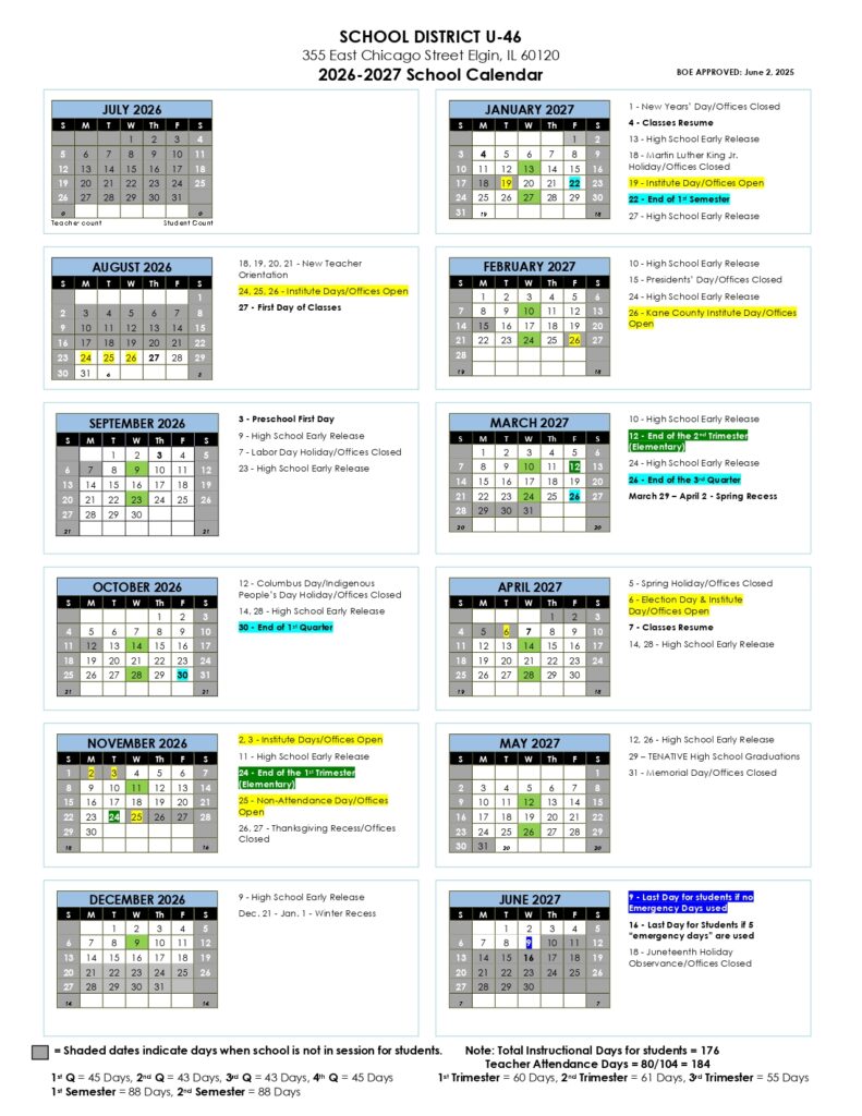 SCHOOL DISTRICT U-46 Calendar 26-27 [PDF]