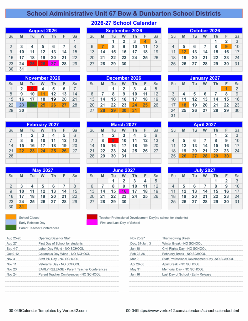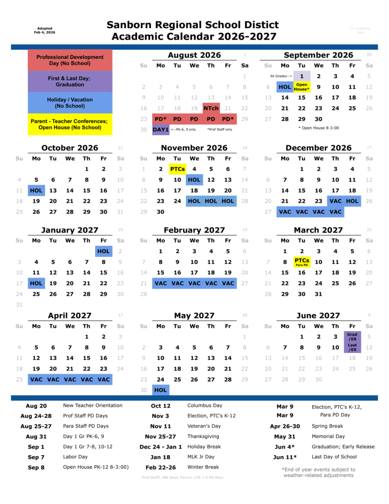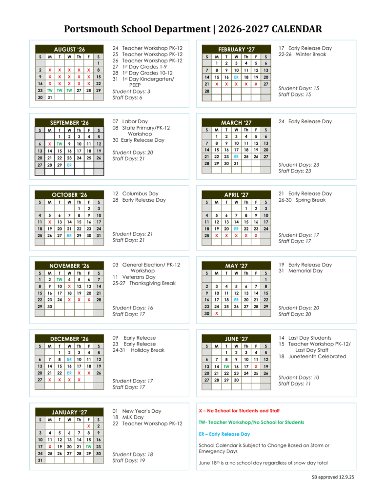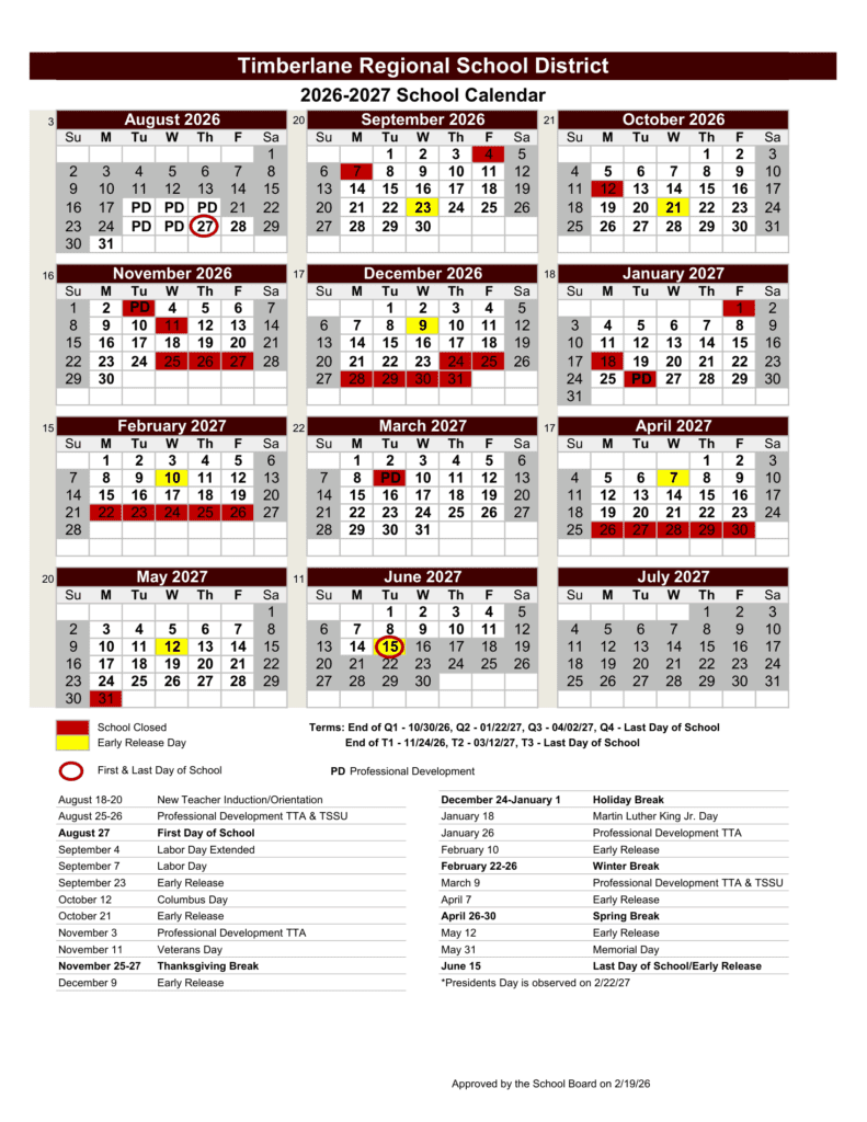 New Hampshire, School Calendars, StatesTimberlane Regional School District Calendar 26-27 Revised [PDF]