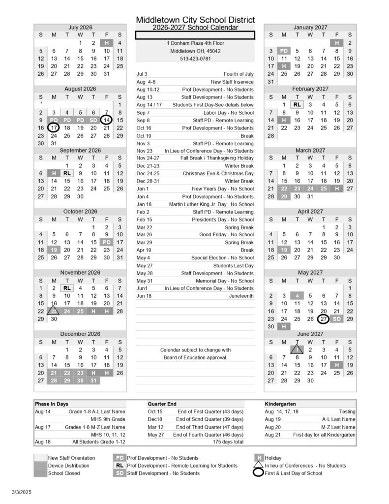 TOLEDO PUBLIC SCHOOLS Calendar 26-27 Updates