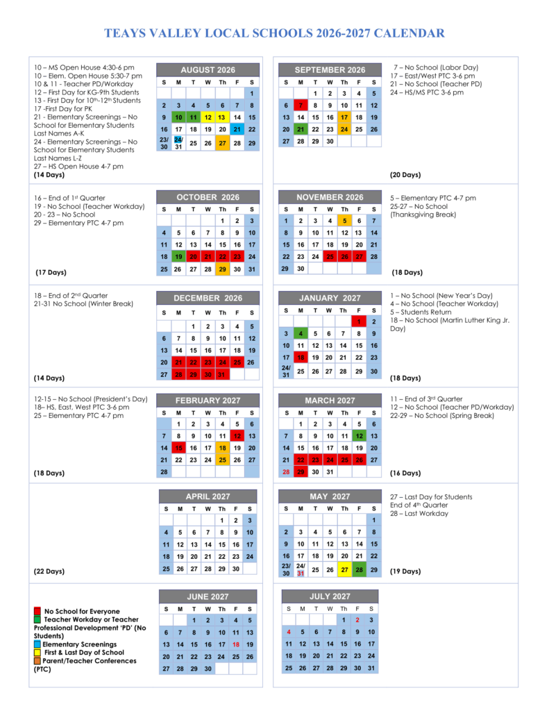 Stow-Munroe Falls School District Calendar 26-27 Updates