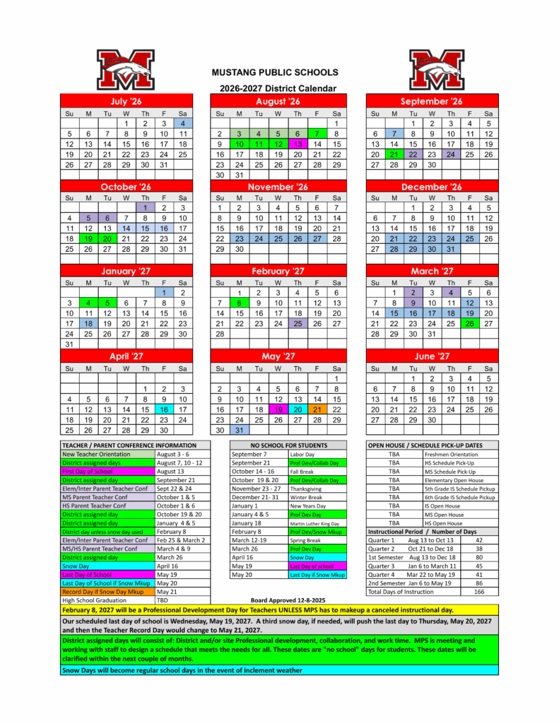 Mid-Del Public Schools Calendar 26-27 (Updated)