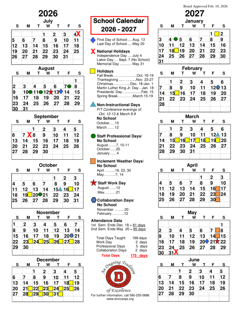 Duncan Public Schools OK 26-27 calendar Updates
