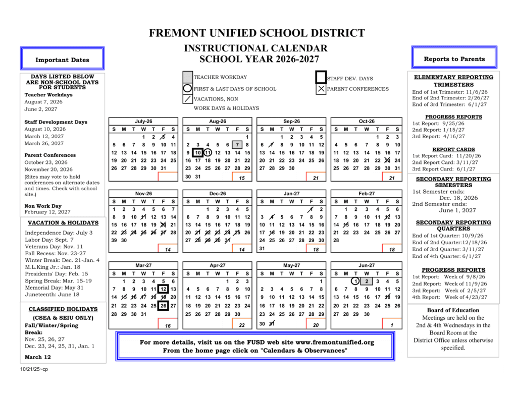 Fremont Unified School District 26-27 Calender