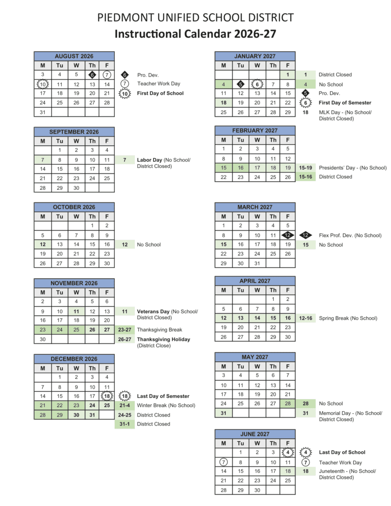 Piedmont Unified School District USD 26-27 Calendar[PDF]