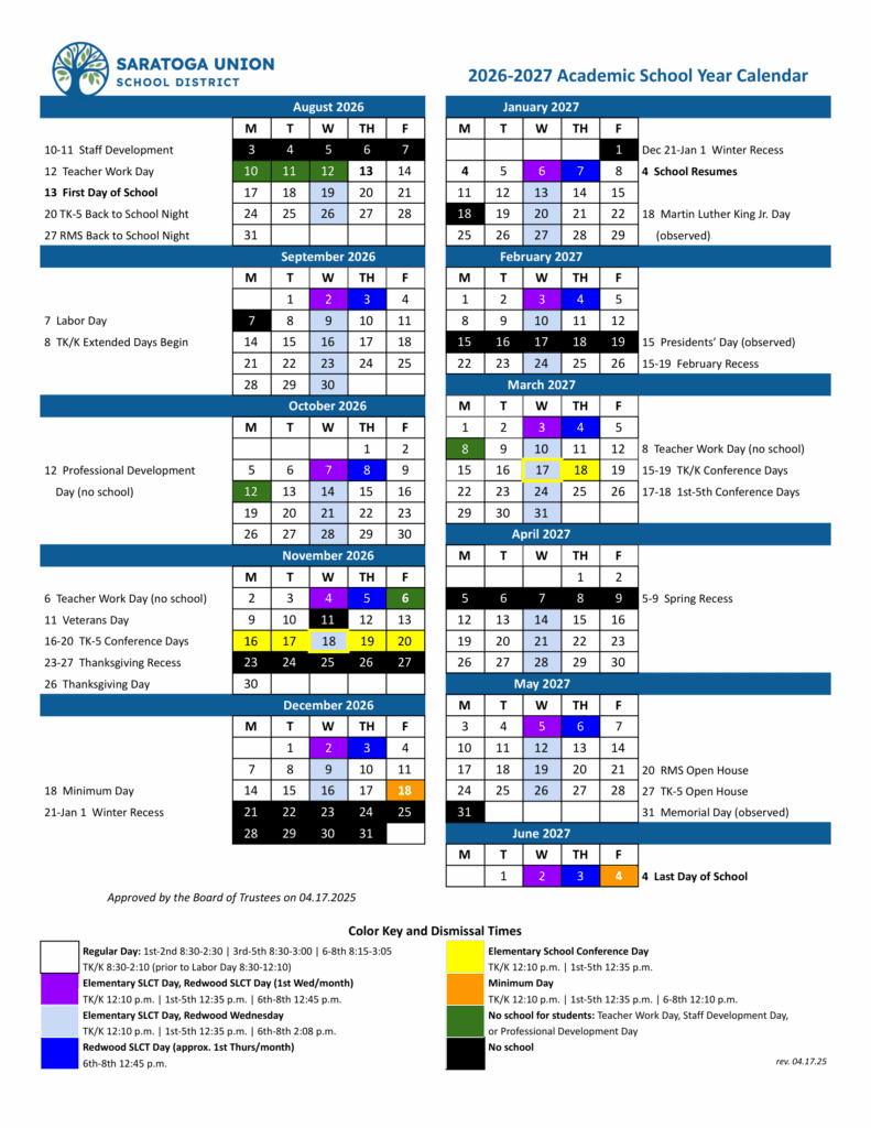 Saratoga Union School District ca District 26-27 Calendar [PDF]