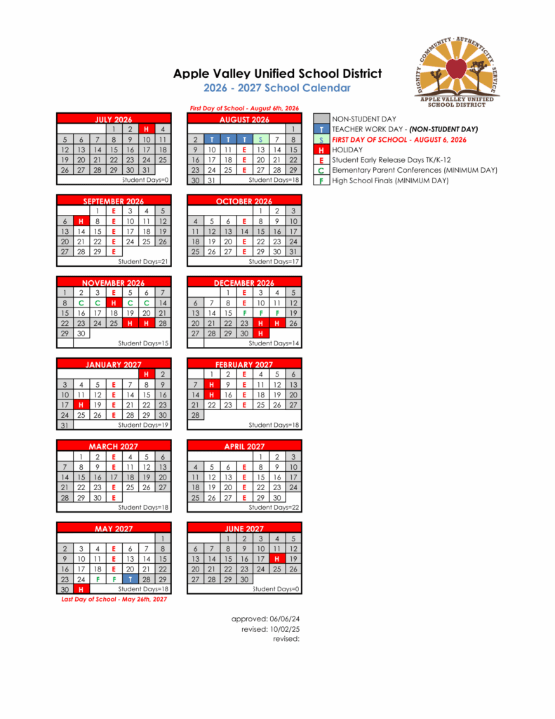 Apple Valley avusd Unified School District 26-27 Calendar [pdf]