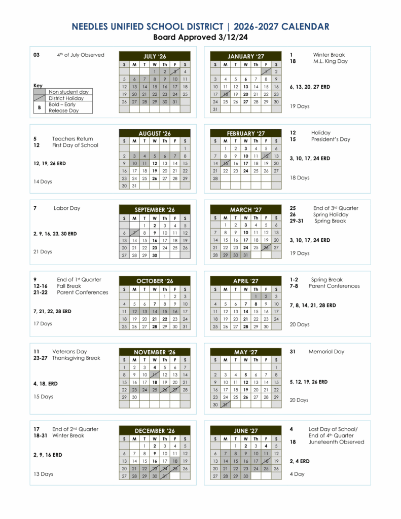Needles Unified School District usd Calendar 26-27 Revised [PDF]