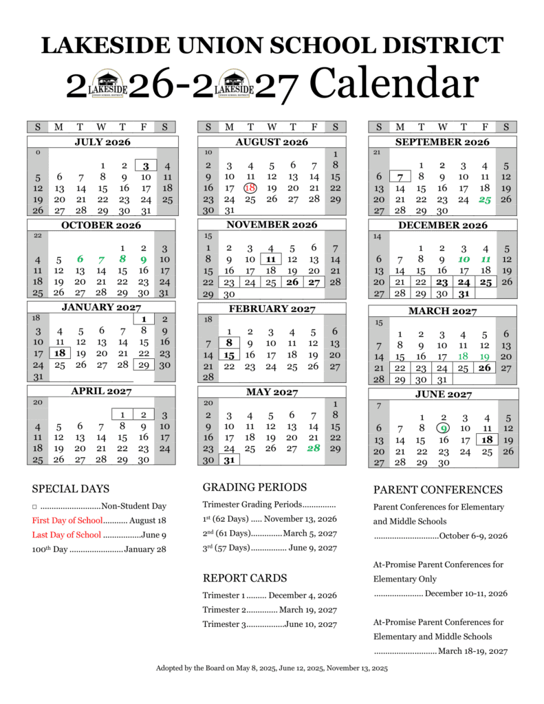 Lakeside Union School District 26-27 Calendar [PDF]