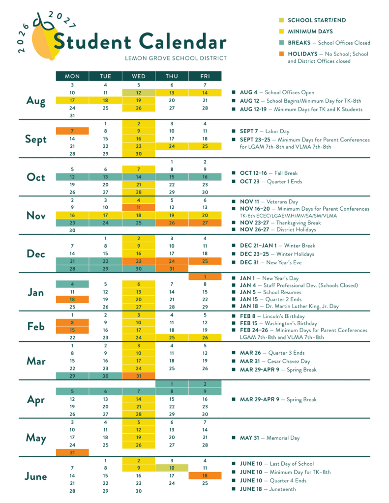 Lemon Grove School District 26-27 Calendar [PDF]