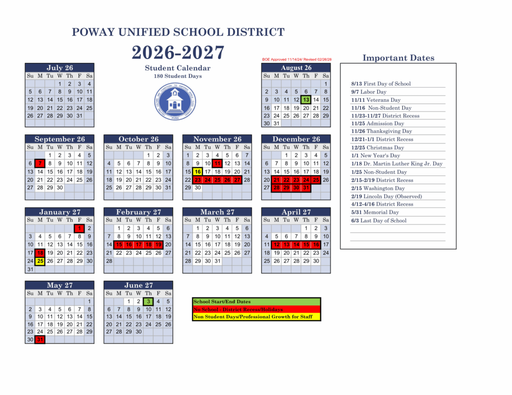 Poway usd Unified School District Calendar 26-27 Revised [PDF]