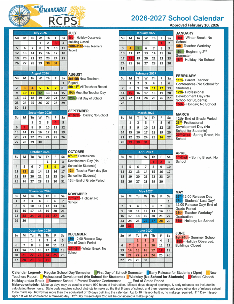 Rappahannock County Public Schools Calendar 26-27