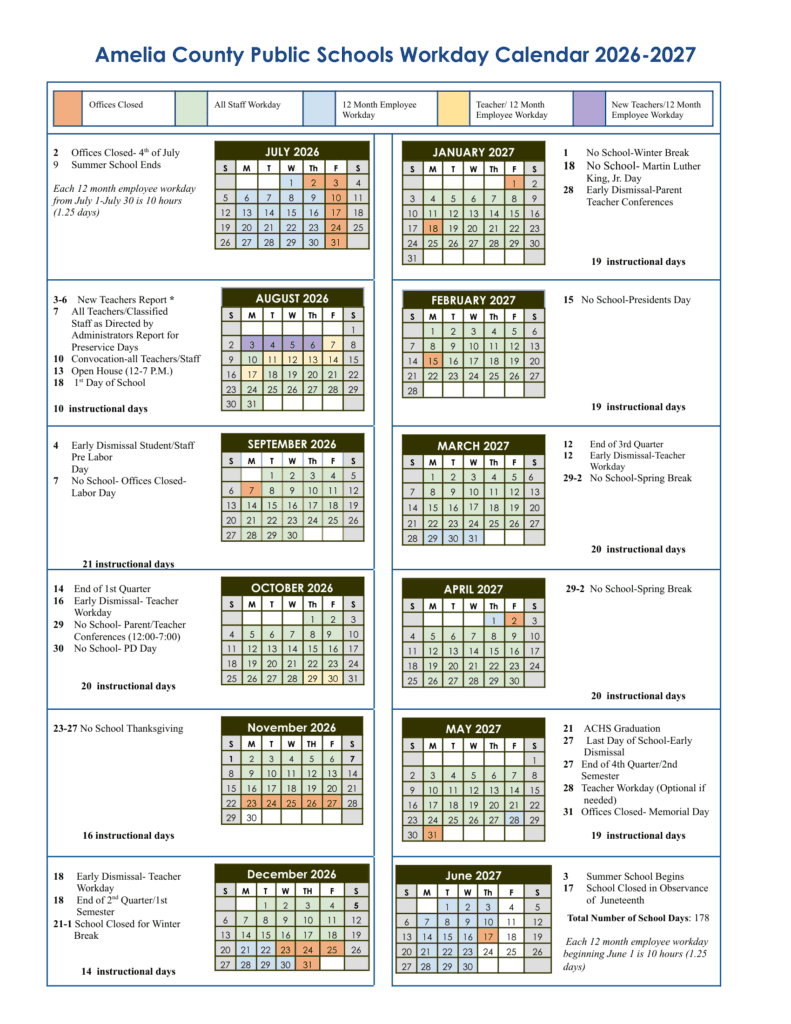 Amelia County Public Schools VA Calendar 26-27 PDF