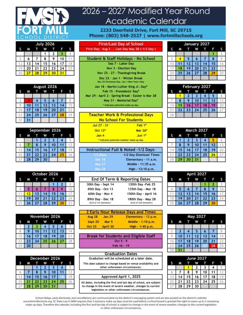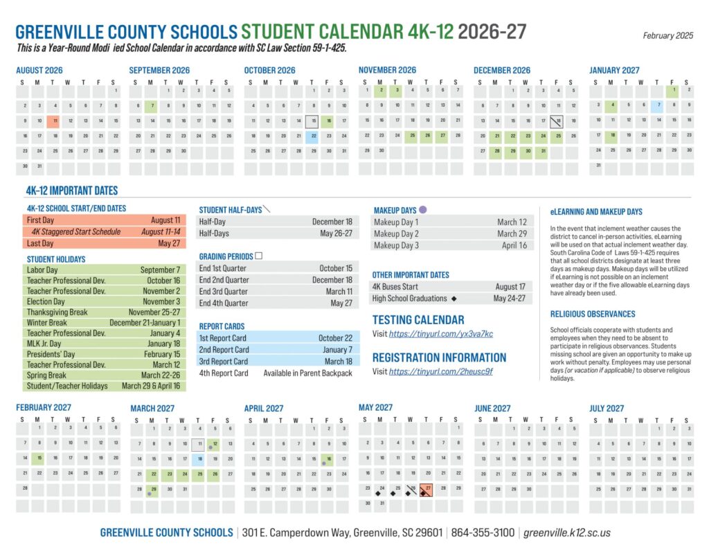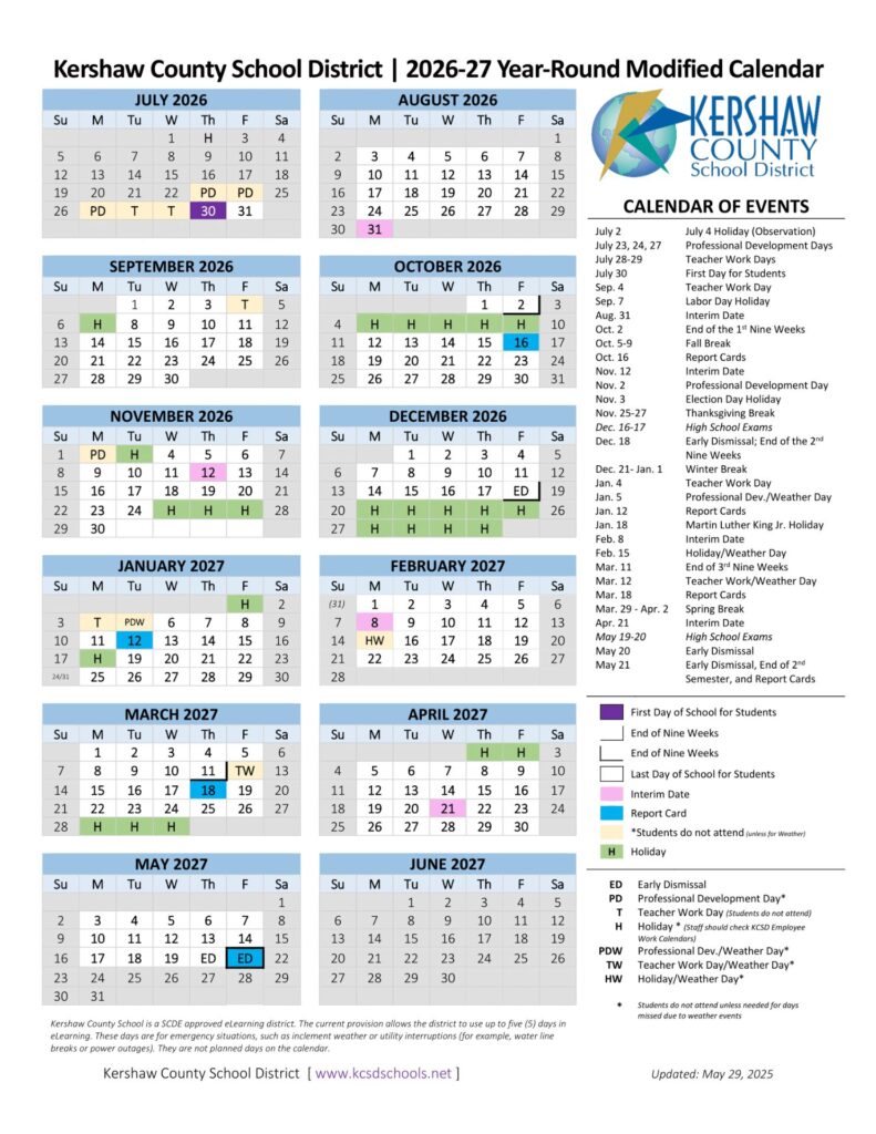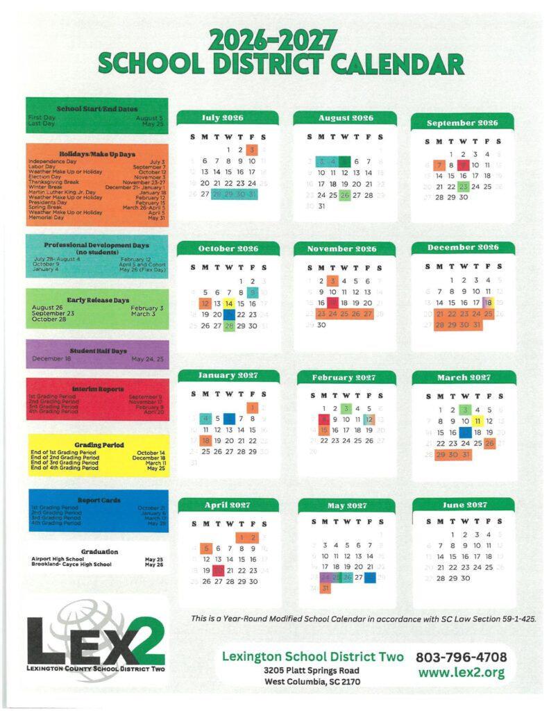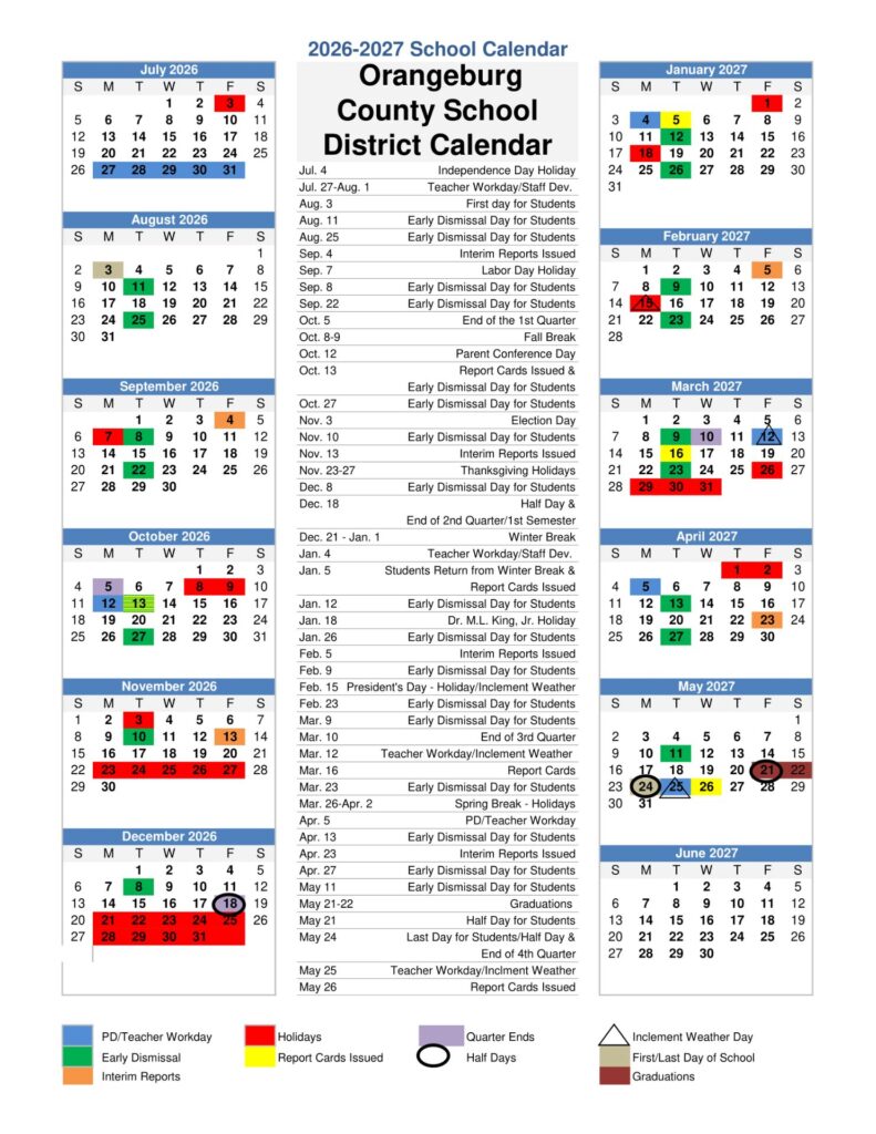School Calendars, South Carolina, StatesOrangeburg County School District Calendar 26-27 Revised [PDF]