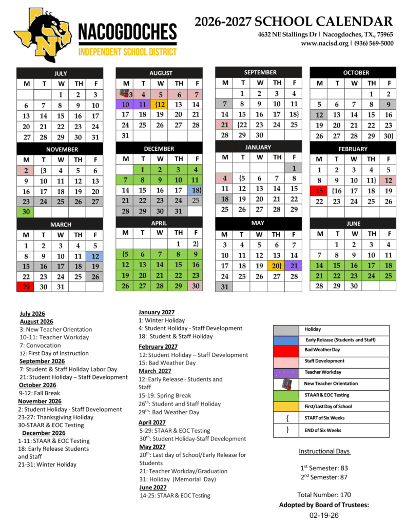 Nacogdoches Independent School District ISD 26-27 Calendar [PDF]