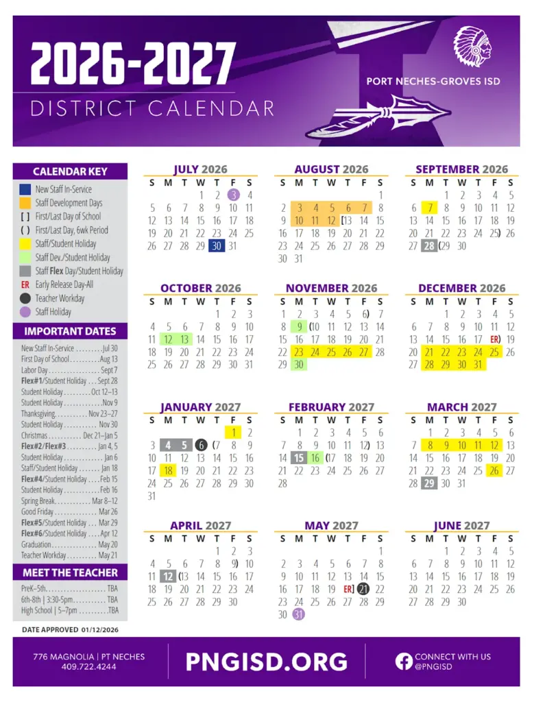 Port Neches-Groves ISD 26-27 Calendar [PDF]