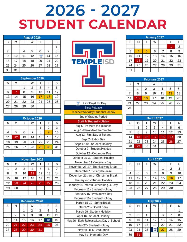 Texarkana ISD TXKISD 26-27 Calendar Revised [PDF]