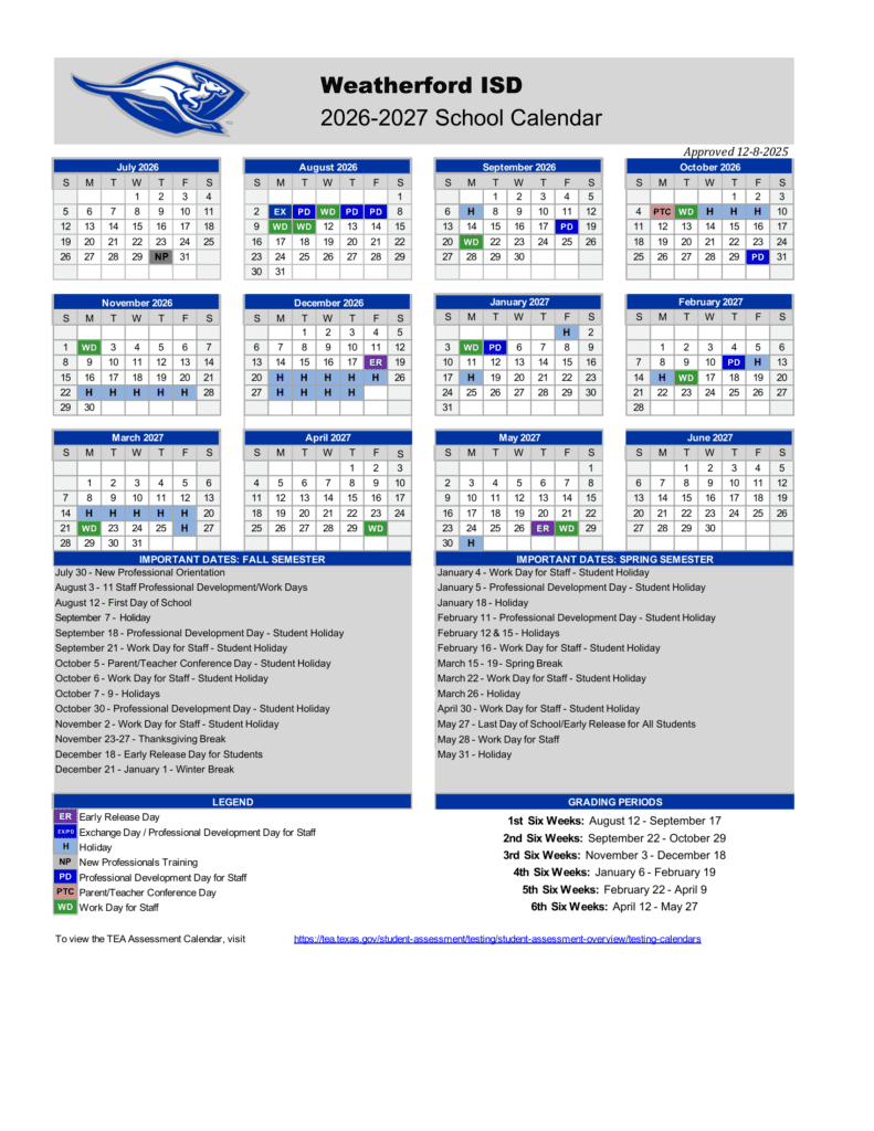 Weatherford ISD 26-27 Calendar Revised [PDF]