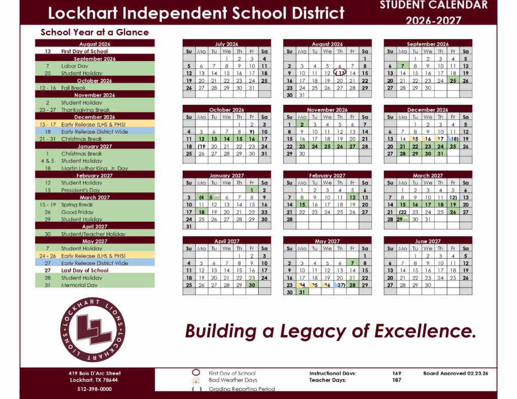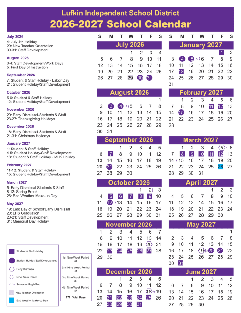 Lufkin ISD 26-27 Calendar [PDF] revised