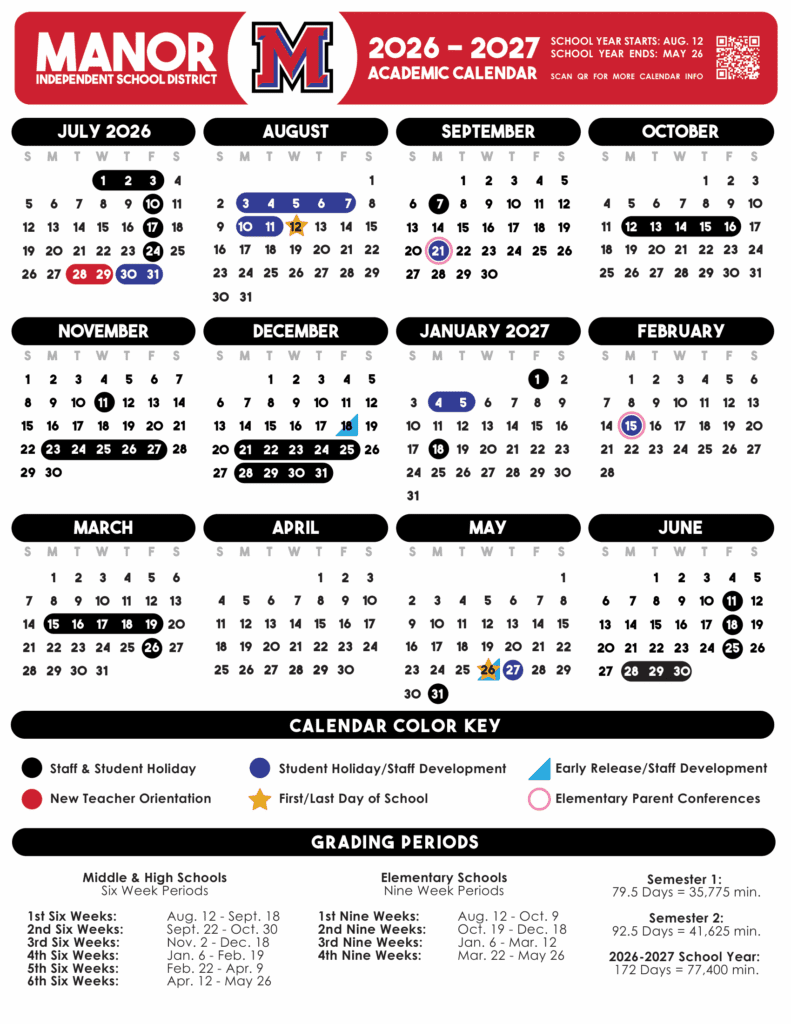 Manor Independent School District ISD 26-27 Calendar [PDF]