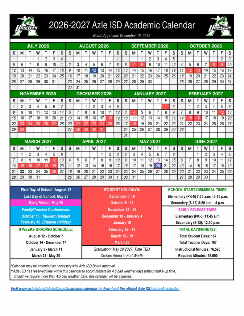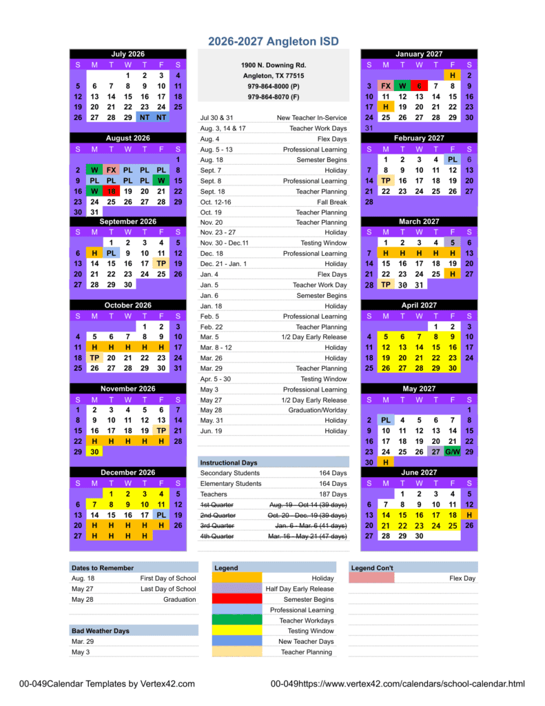 Angleton ISD 26-27 Calendar [PDF] Revised
