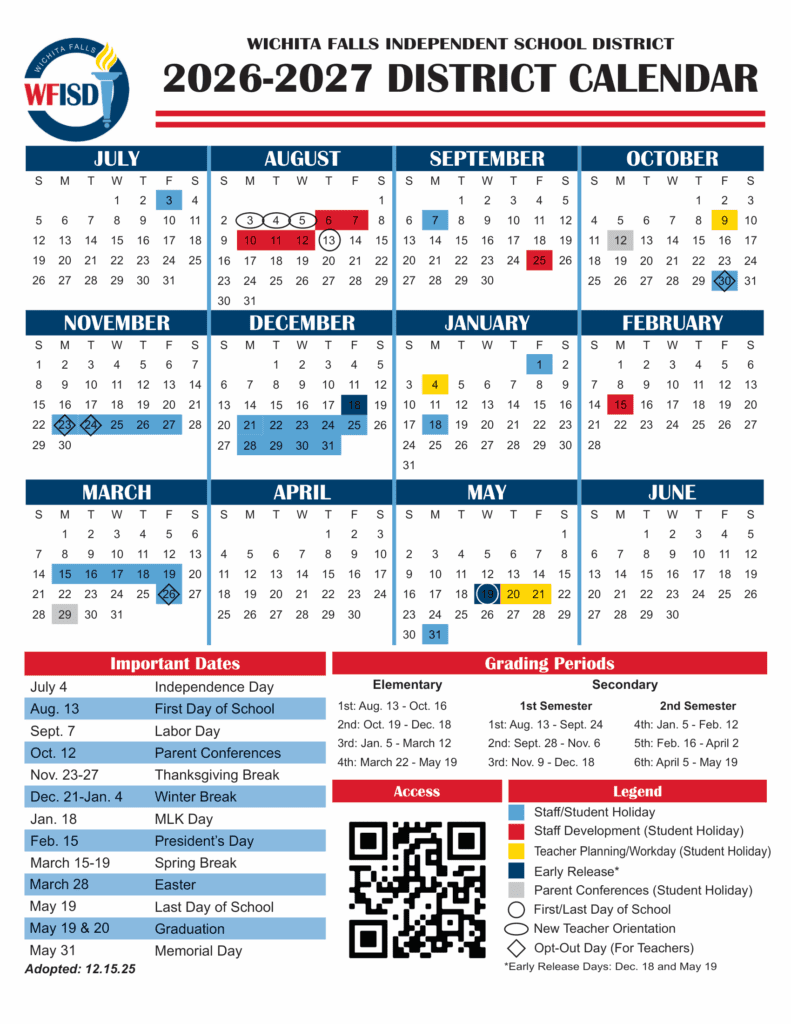 Wichita Falls ISD Calendar 26-27 Revised [PDF]