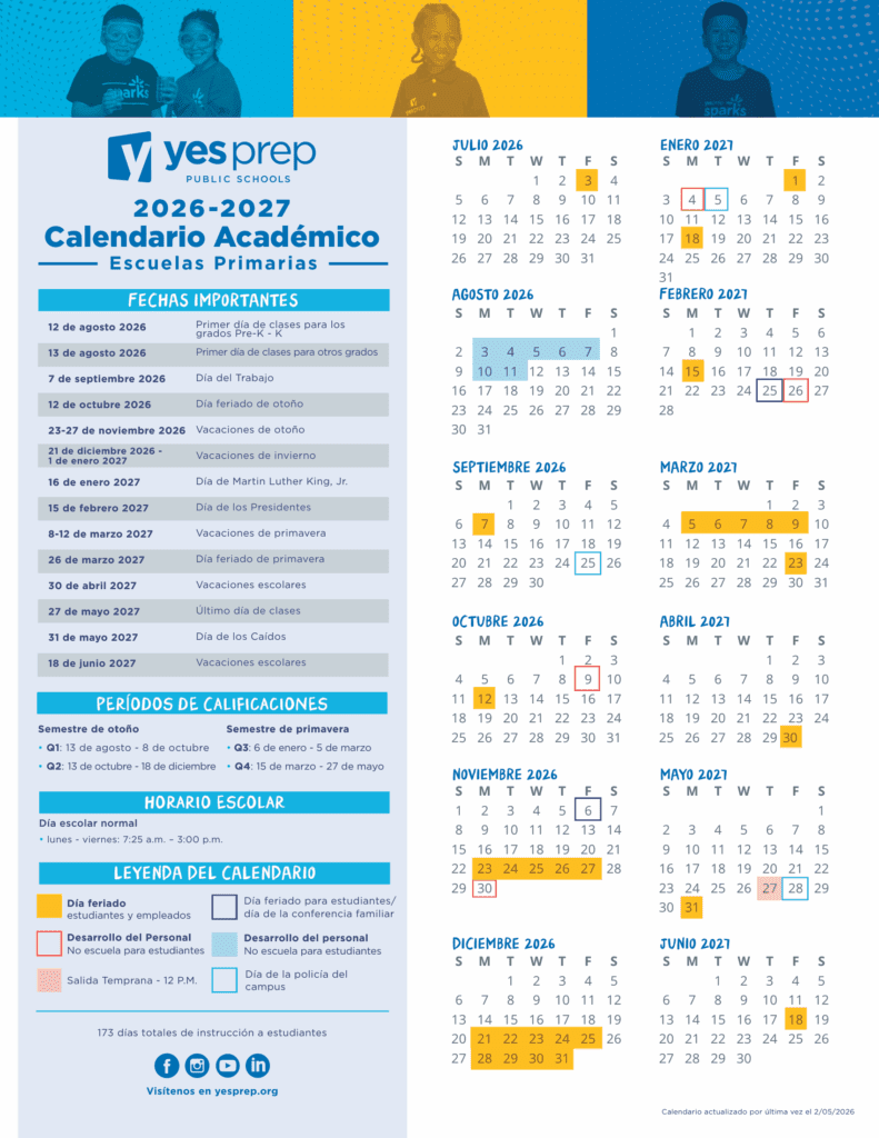 YES Prep Public Schools Calendar 26-27 Revised [PDF]