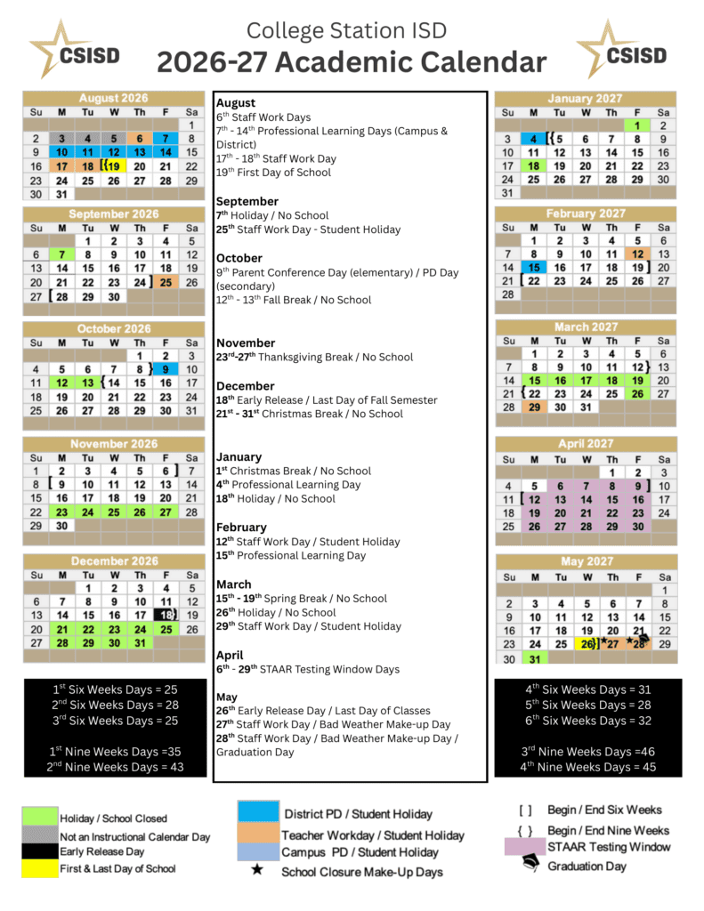 College Station ISD 26-27 Calendar [PDF]