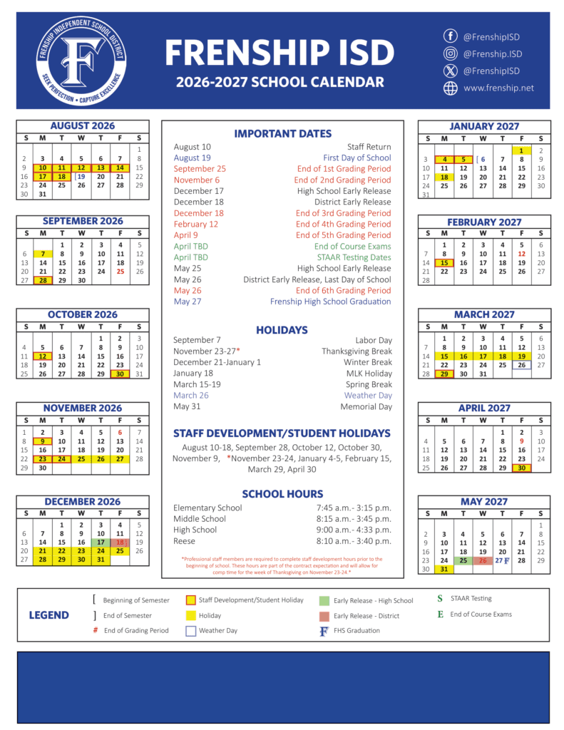 Frenship ISD 26-27 Calendar [PDF] Revised