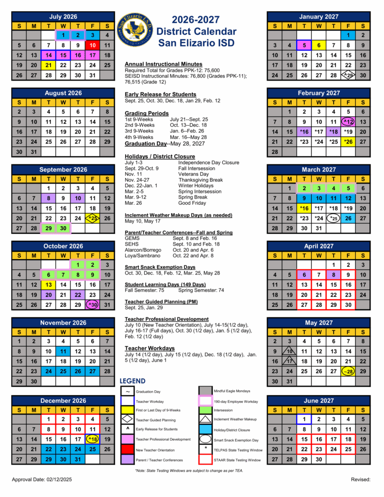 San Elizario ISD calendar 26-27 Revised [PDF]