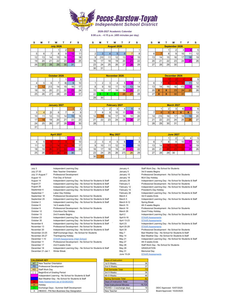 Pecos-Barstow-Toyah Isd calendar 26-27 Revised [PDF]