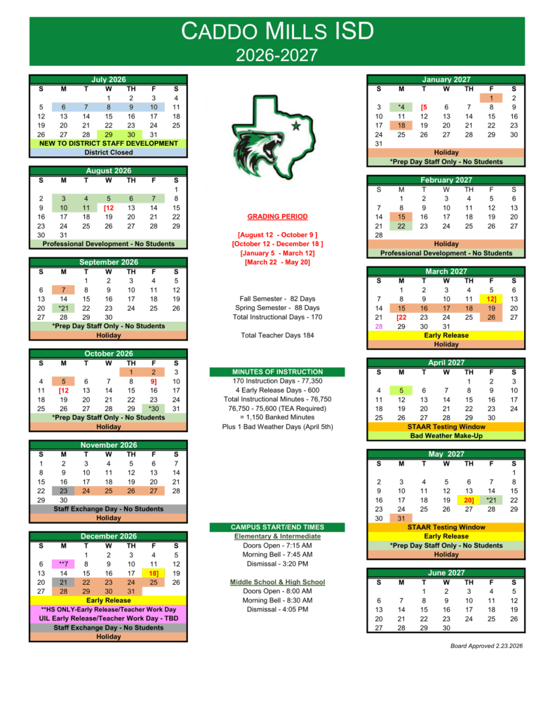 Caddo Mills ISD Calendar 26-27 Revised [PDF]