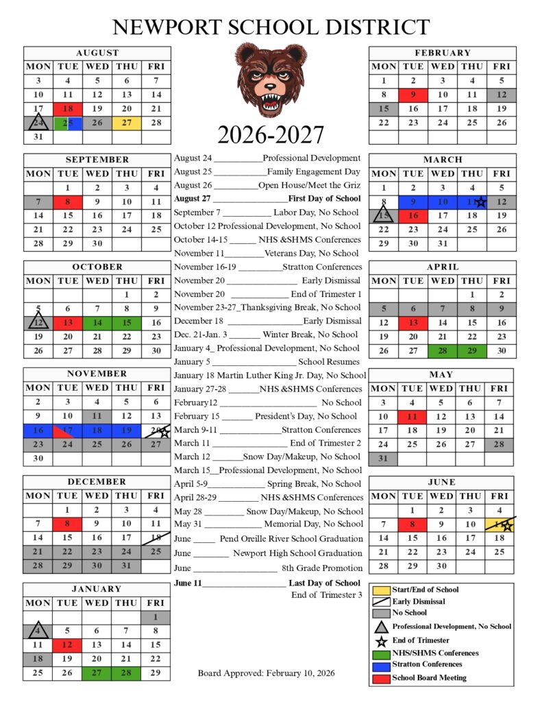 NEWPORT SCHOOL DISTRICT WA Calendar 26/27 Updated