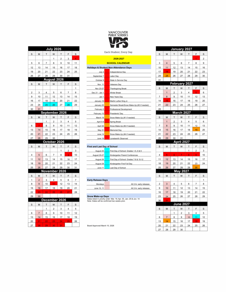 Vancouver Public Schools Calendar 26-27 Revised [PDF]