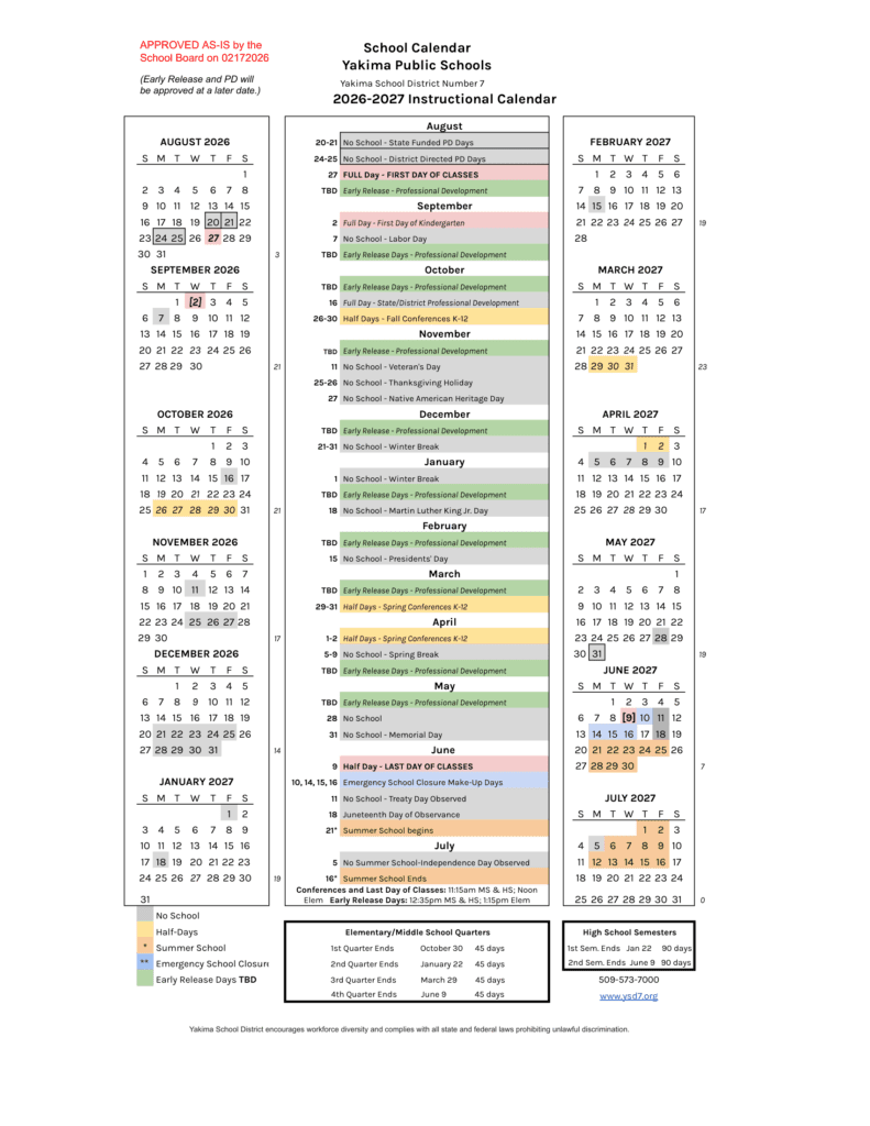 Yakima Public Schools Calendar 26-27 Revised [PDF]