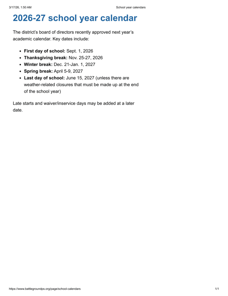 Battle Ground Public Schools 26-27 Calendar Revised [PDF]