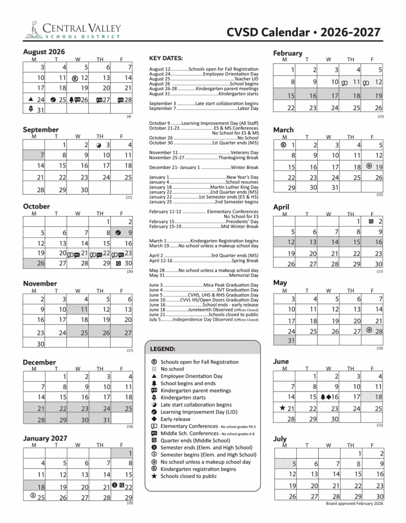 Central Valley School District 26-27 Calendar Revised [PDF]