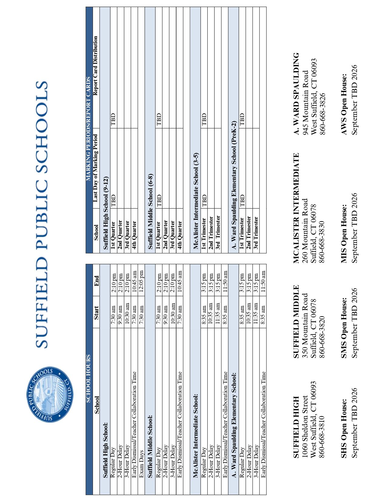 Suffield Public Schools Calendar 2026-2027 FAQ