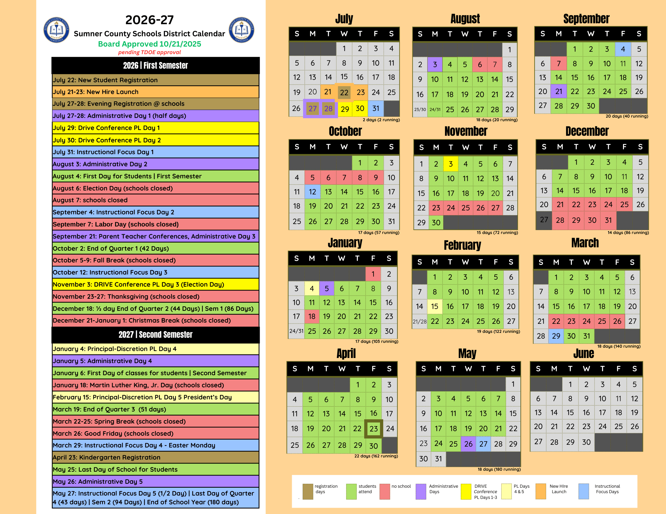 Sumner County Schools District Calendar 2026-2027 – Important Dates