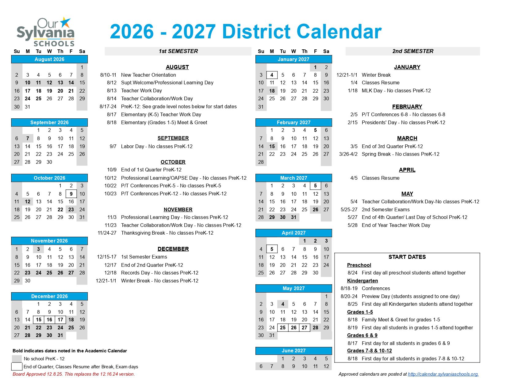 Dates are sourced from the official Sylvania Schools Calendar 26-27 Updates website. Dates may change at the discretion of the district. Always verify with the official school website for the latest updates.