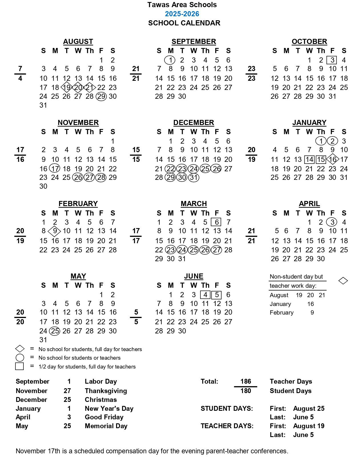 Tawas Area Schools 2025-2026 Calendar