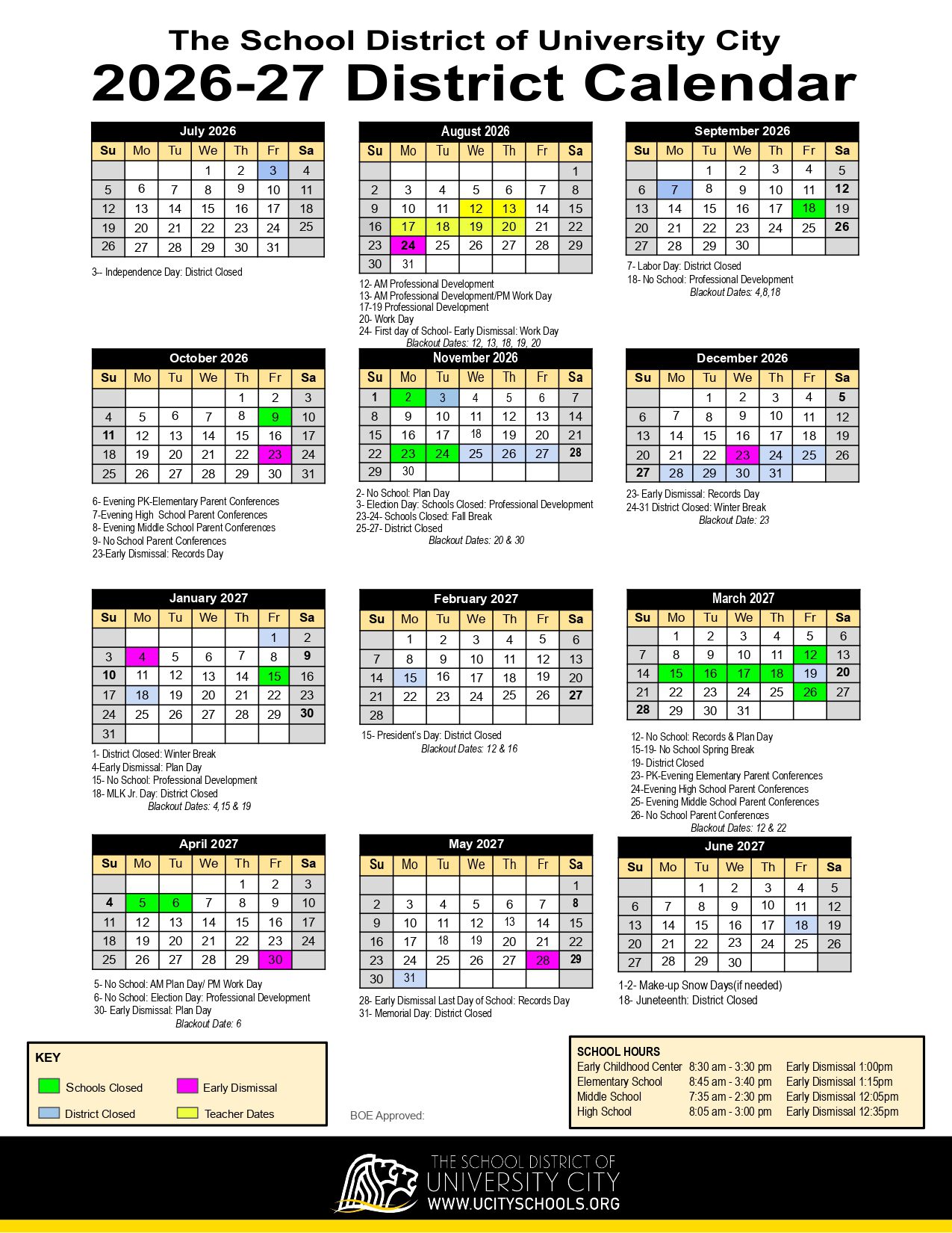 The School District of University City Calendar (2026-2027)