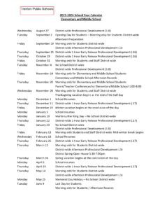 April 23, 2026District-wide 1 Hour Early Release Professional Development