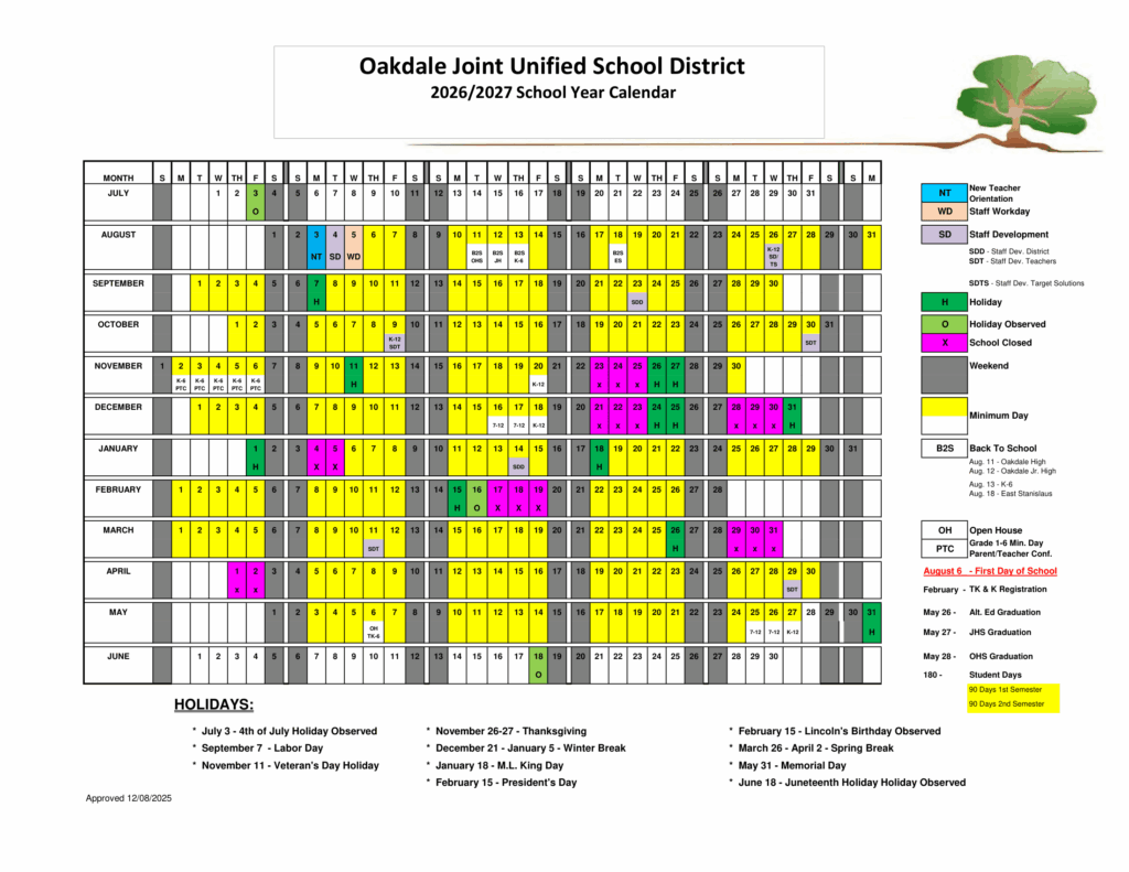 Oakdale Joint Unified School District USD 26-27 Calendar [PDF]