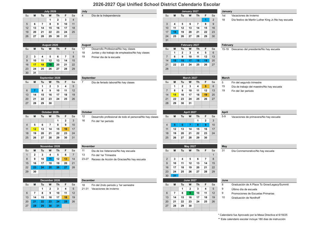 Ojai Unified School District 26-27 Calendar [pdf]