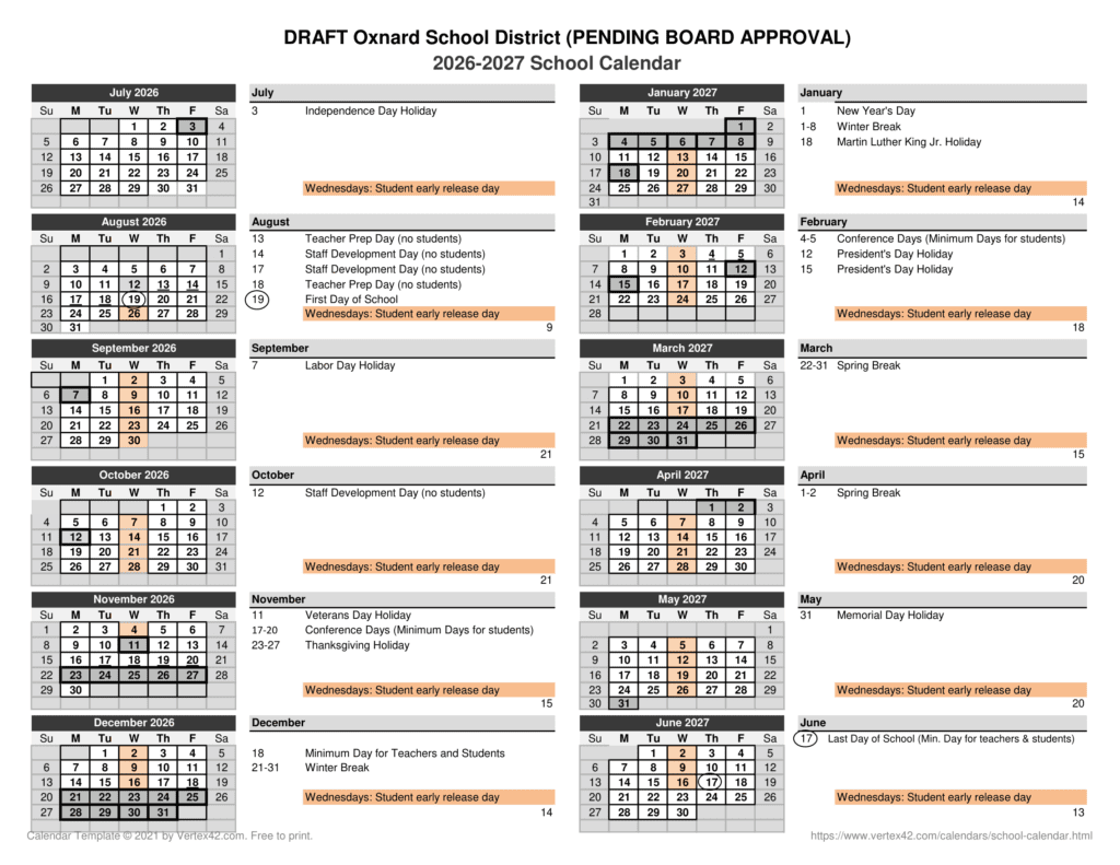 Oxnard School District 26-27 Calendar [PDF]