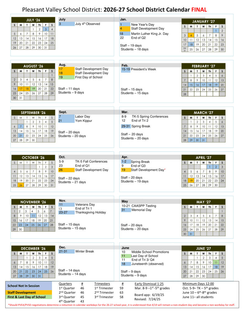 Pleasant Valley School District SD 26-27 Calendar [PDF]