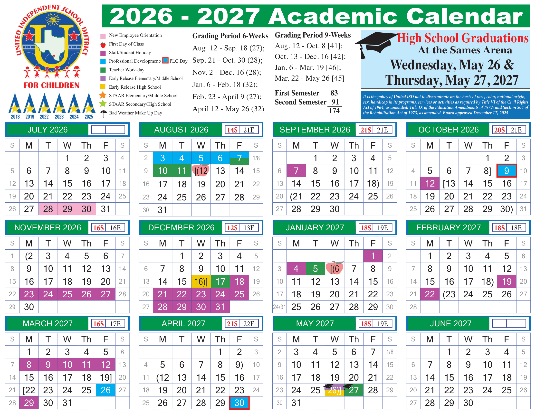 United Independent School District Calendar (2026-2027)