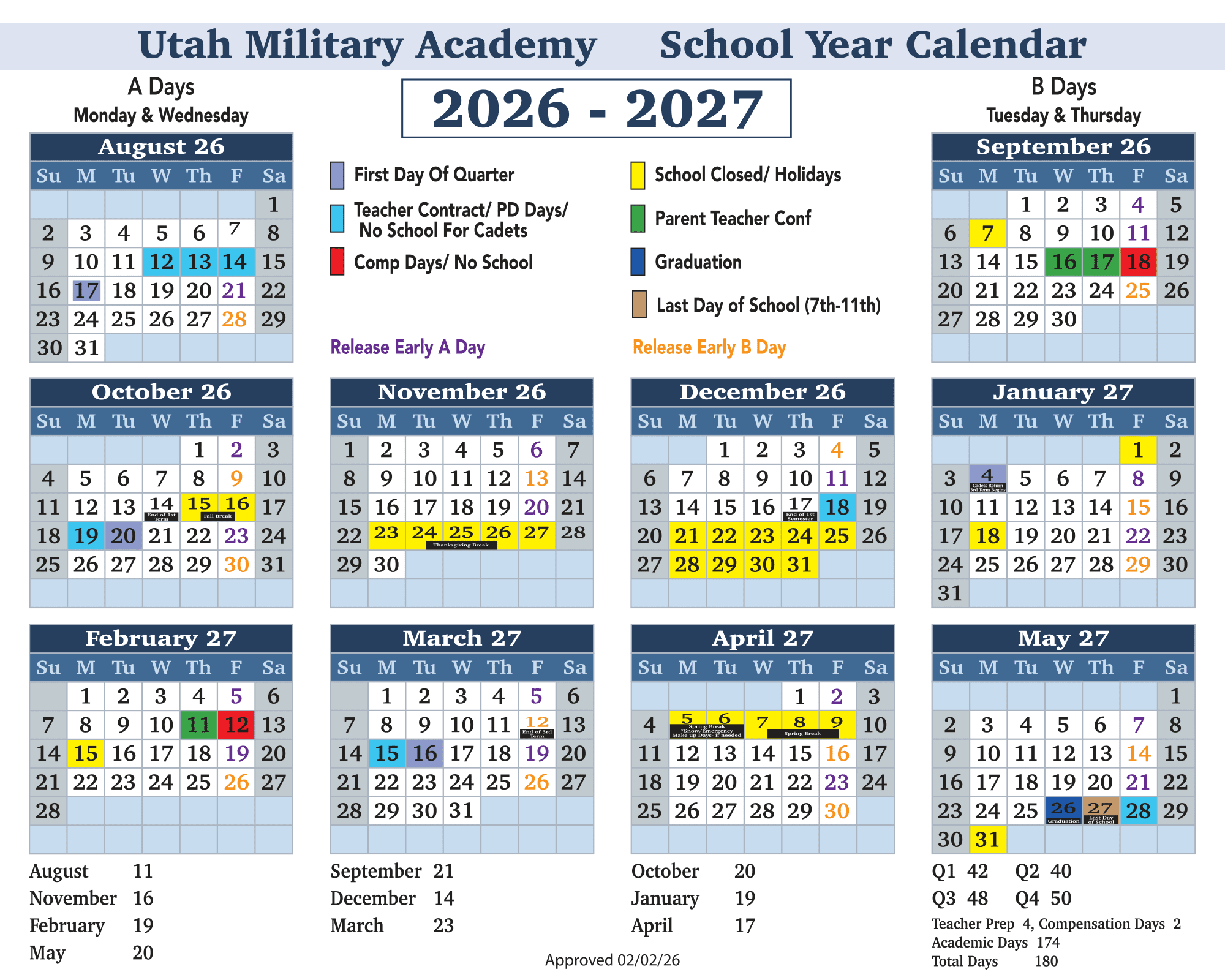Utah Military Academy Calendar 2026-2027 – Important Dates
