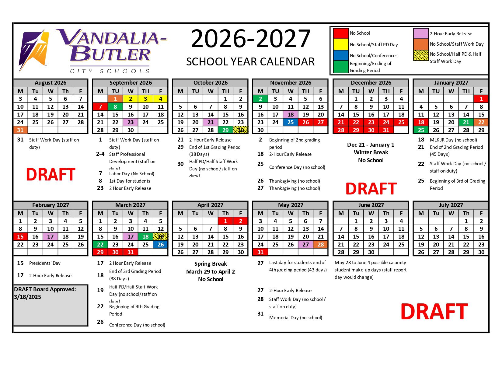 VANDALIA-BUTLER SCHOOLS Calendar 26/27 Updates