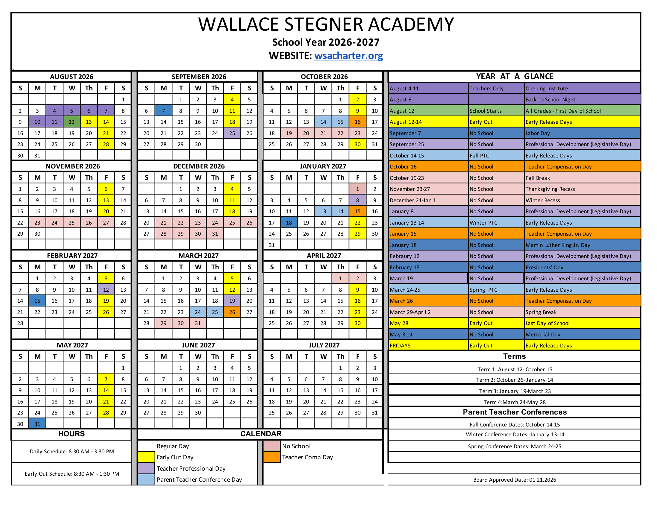 Dates are sourced from the official Wallace Stegner Academy 26-27 Calendar Revised [PDF] website. Dates may change at the discretion of the district. Always verify with the official school website for the latest updates.